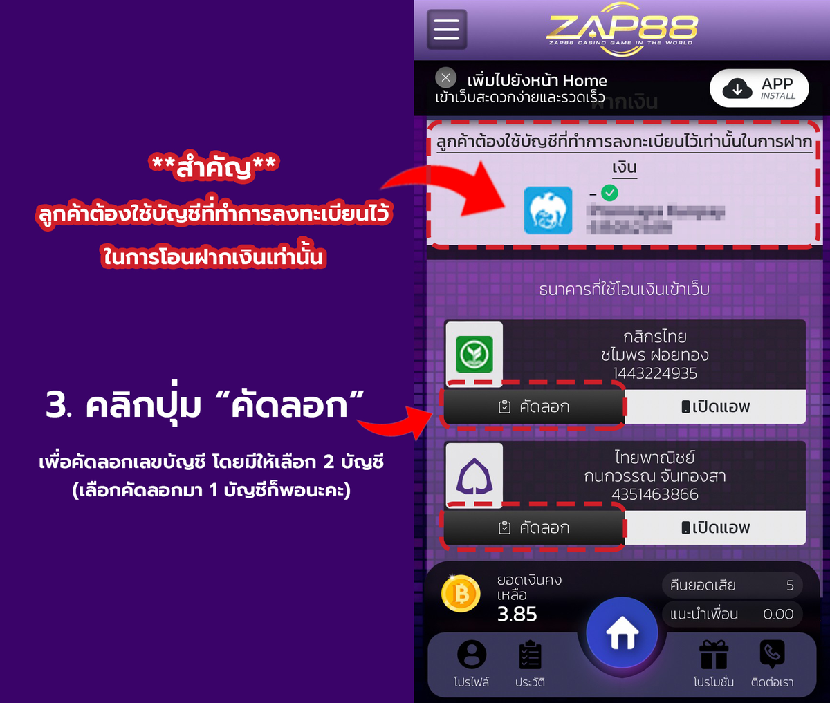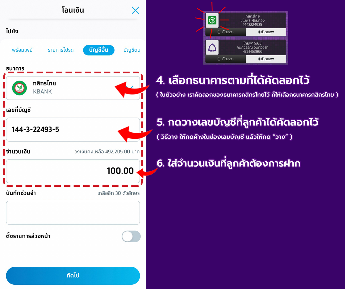 วิธีฝากเงิน - ผ่านการโอนธนาคาร
