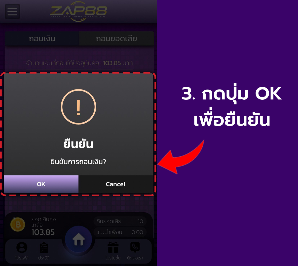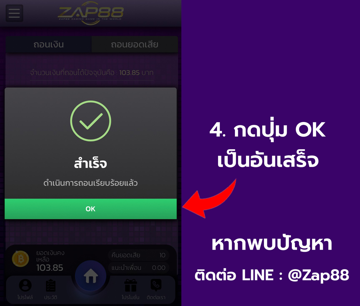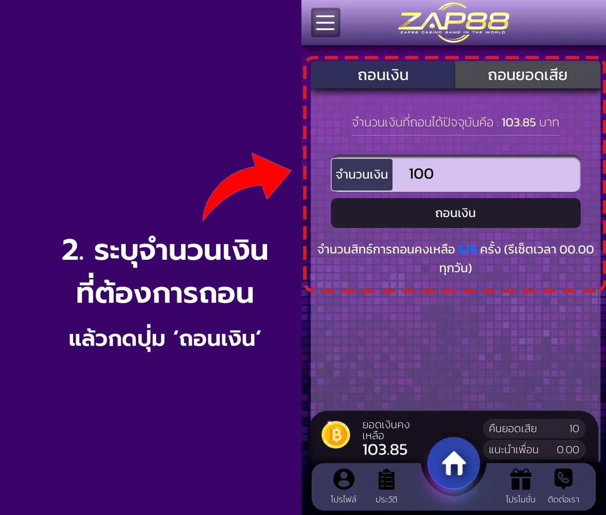วิธีถอนเงิน - เข้าบัญชีธนาคาร